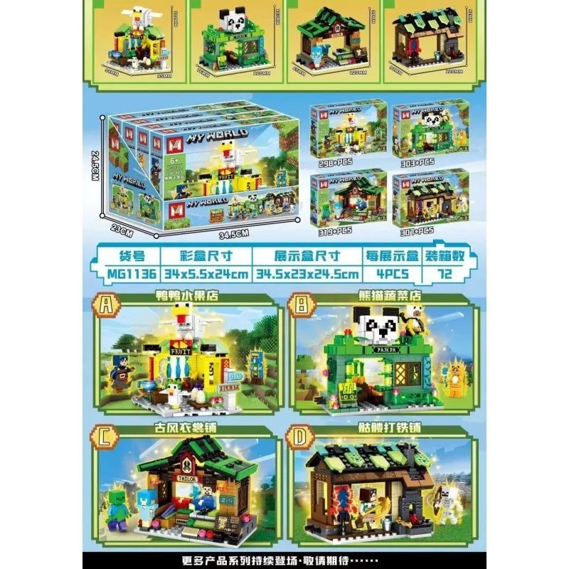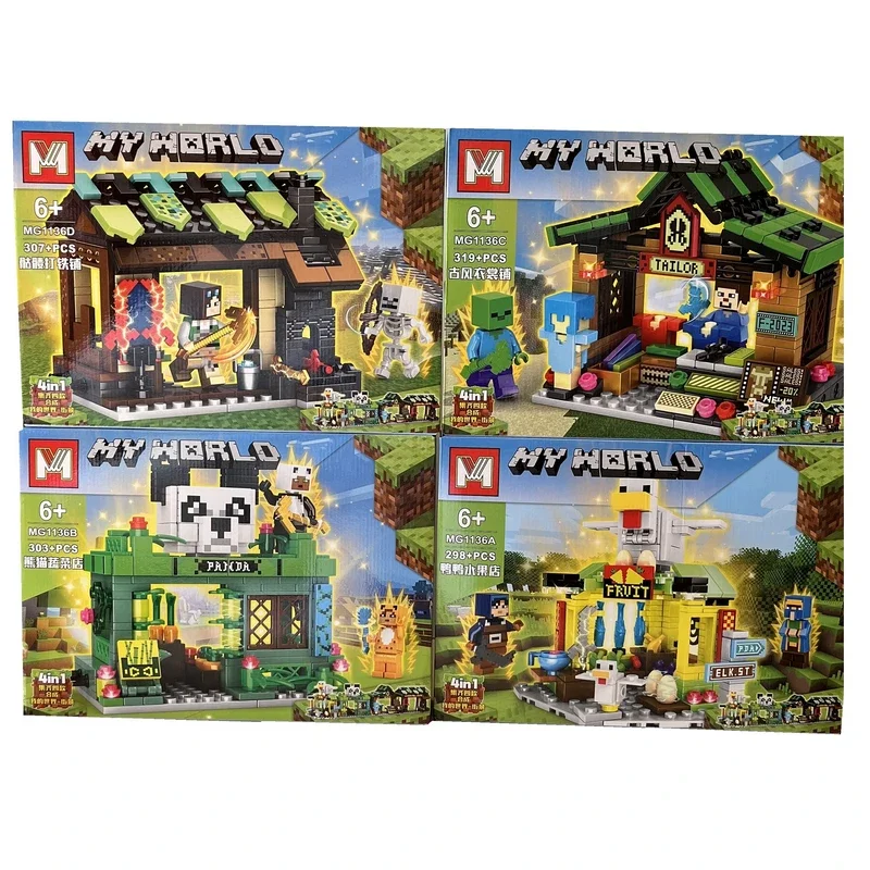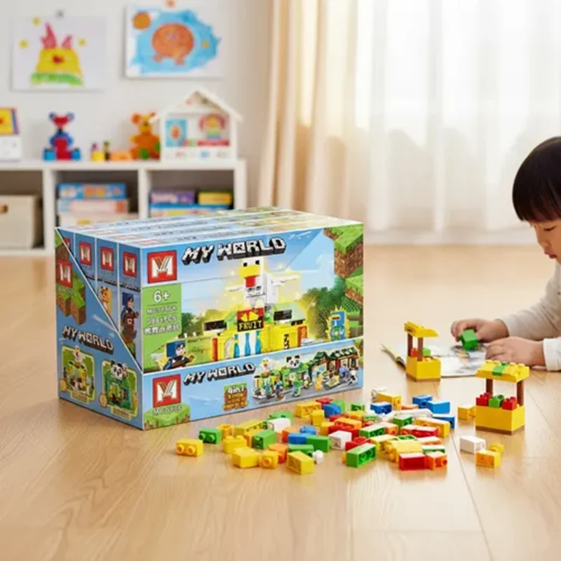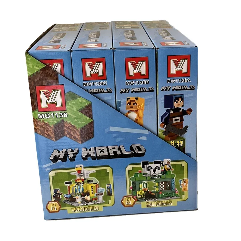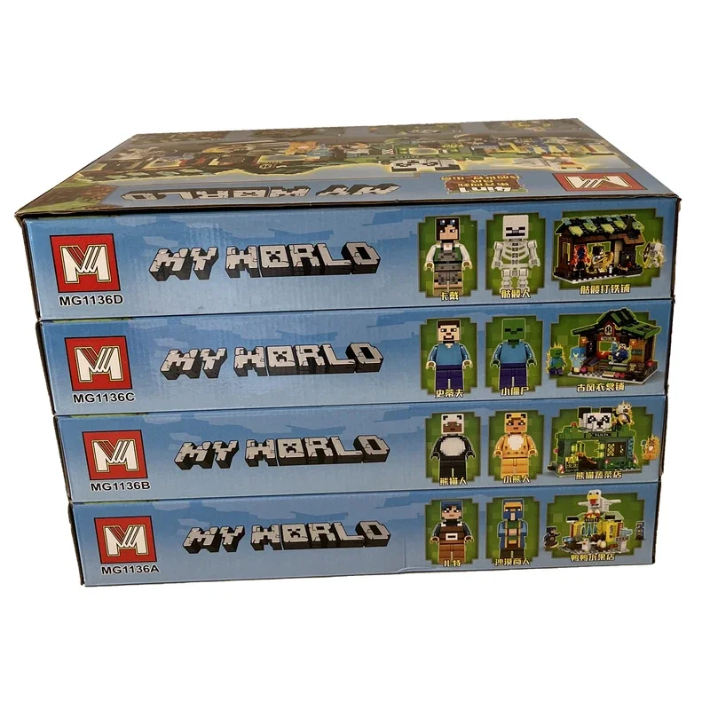ساختنی برند مای ورلد ماینکرافت با جنس پلاستیک ABS نشکن مطابق با استاندارد اروپا شامل ۴ جعبه جداگانه و با طرح های متفاوت عینا مشابه تصویر میباشد.